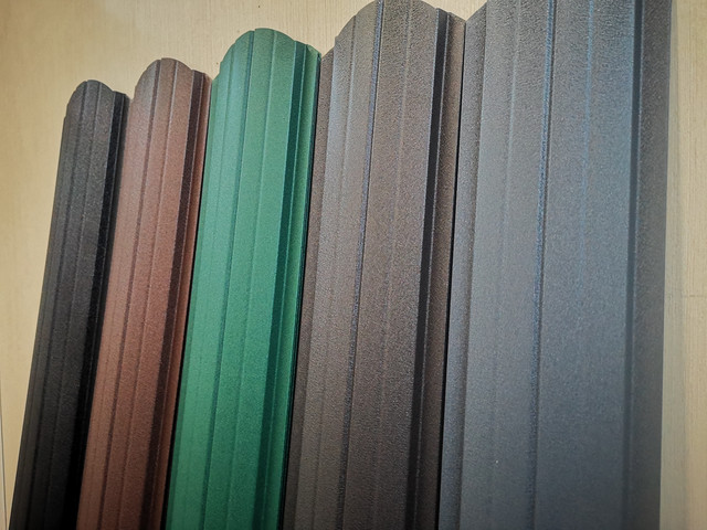 Металлический штакетник для заборов имеет форму планки шириной 108 мм..